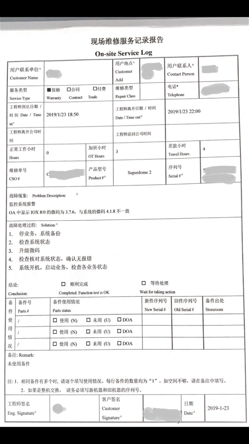 在本次多事件工单中,电源告警顺利解决;其它固件已经通过变更工单和现场升级成功,相关模块告警日志已经消除。(电源更换情况:HP Superdome2 电源 PN:500242-001 数量:3)。