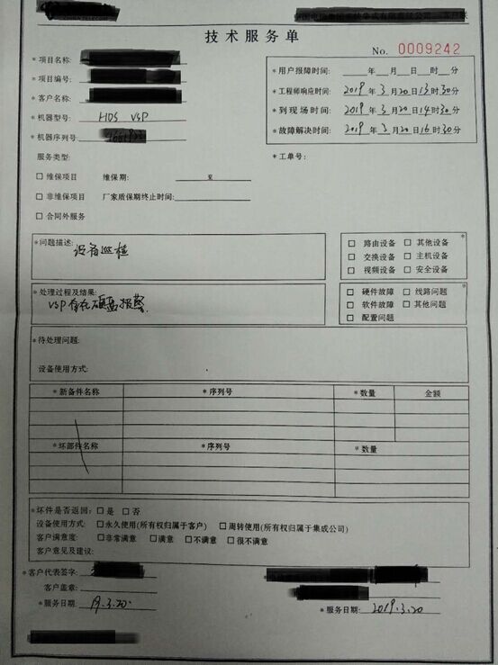 2019年3月20日接到某客户单次技术服务支持需求,设备型号为HDS VSP高端存储,设备有告警,需要安排工程师到现场进行诊断并对设备系统巡检,客户要求当天下午安排人员到场处理。在和客户确认完设备型号、地点、时间和要求之后,我司内部进行了如下的操作:1、销售人员首先确认自有工程师是否时间合适,确认自有工程师可以按照客户要求到场处理。