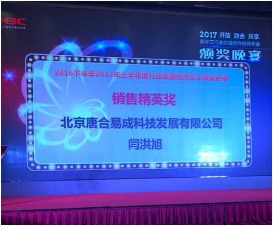 在上周闭幕的新华三行业价值合作伙伴大会上,我司员工闫洪旭荣获新华三2016年下半年2017上半年度行业渠道销售精英奖。