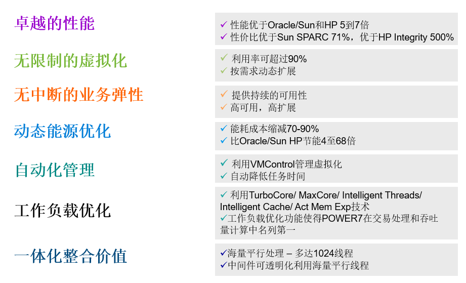 设计用于关键业务工作负载的虚拟化整合,替代Power595成为新一代关键业务的最佳整合平台。