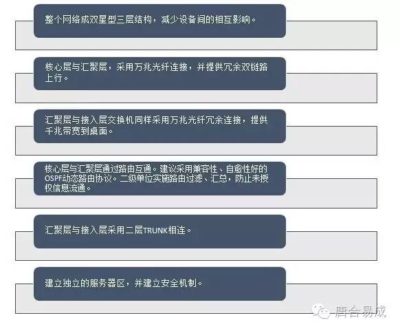 详细设计包含:核心层、汇聚层、接入层、服务器区、广域网、无线网等。
