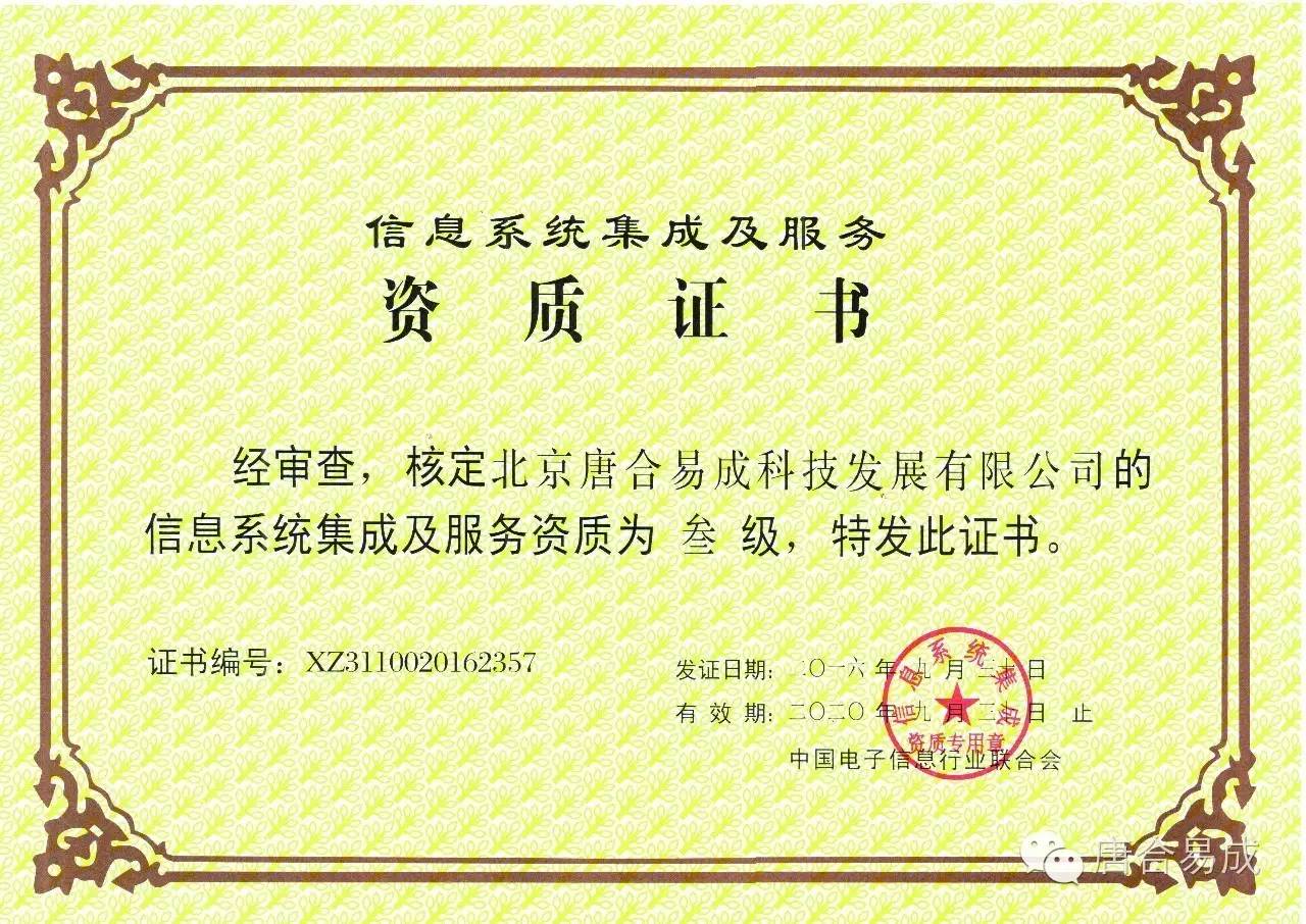 近期,我司顺利通过国家相关单位认证评审,被正式授予信息系统集成及服务三级资质证书。