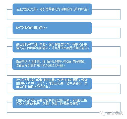 近期,唐合易成凭借优异的技术实力,获得华北地区某机关单位机房搬迁业务。届时,我们将协助用户完成同城新老机房的搬迁工作,设备含:服务器、小型机、存储、光纤交换机、网络交换机等近600台,品牌涵盖:IBM、EMC、昆腾、HP、联想、DELL、华为、曙光等。我司将全面负责全程搬迁工作以及必备的全部材料、设备、工具、人力……
