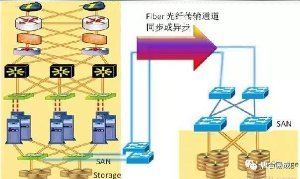 同城灾备直接采用SAN的FICON的通道对数据进行镜象与复制到灾备数据中心。可实现同步或异步的备份,可快速实现数据备份,同时这种模式可以不用占用服务器的资源,不会影响现有生产网络。